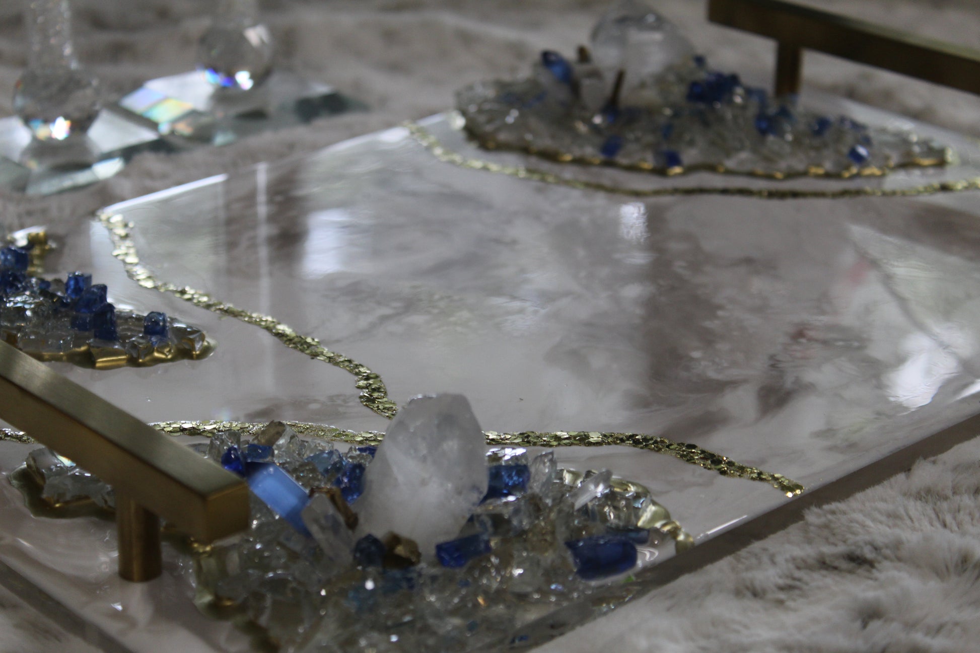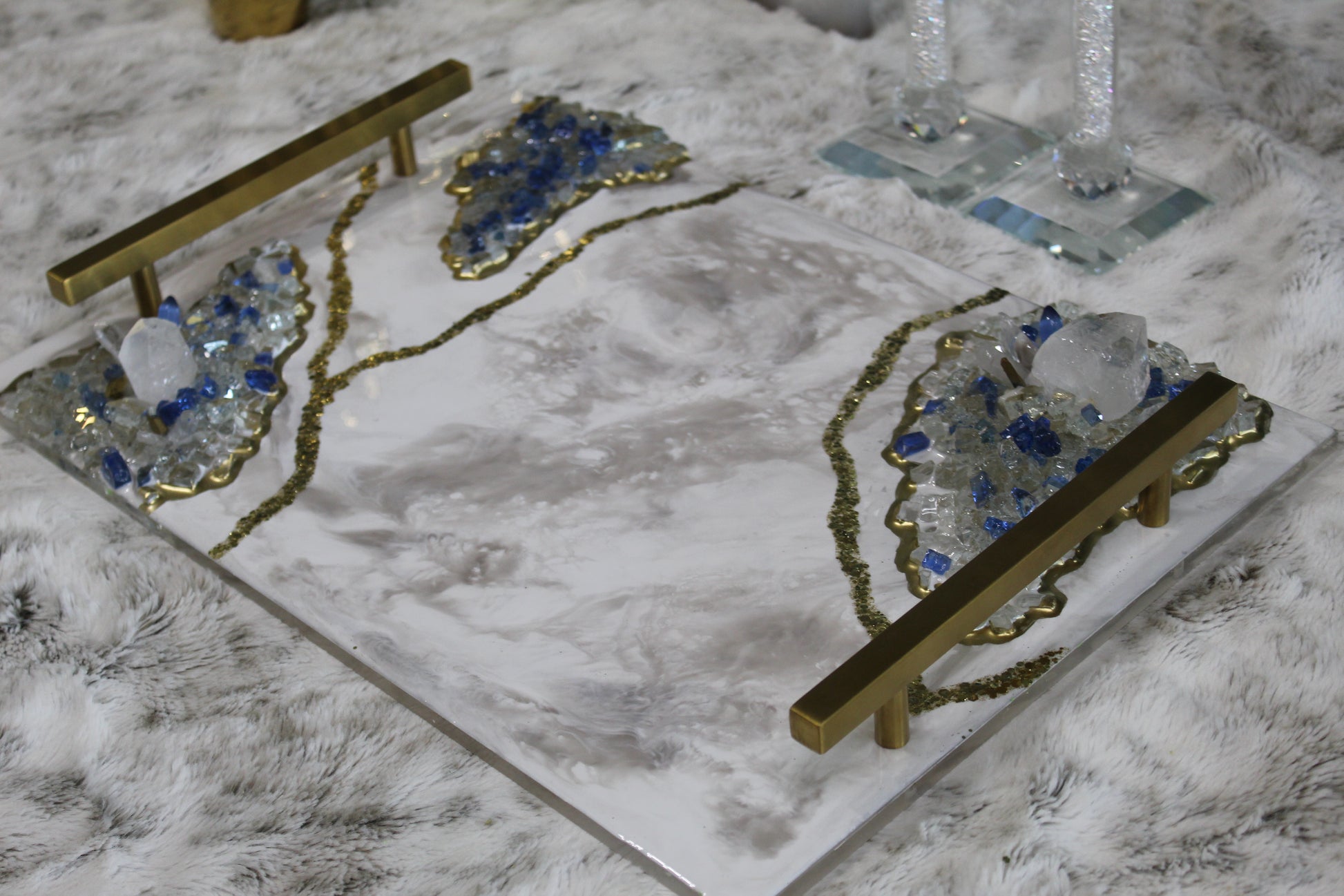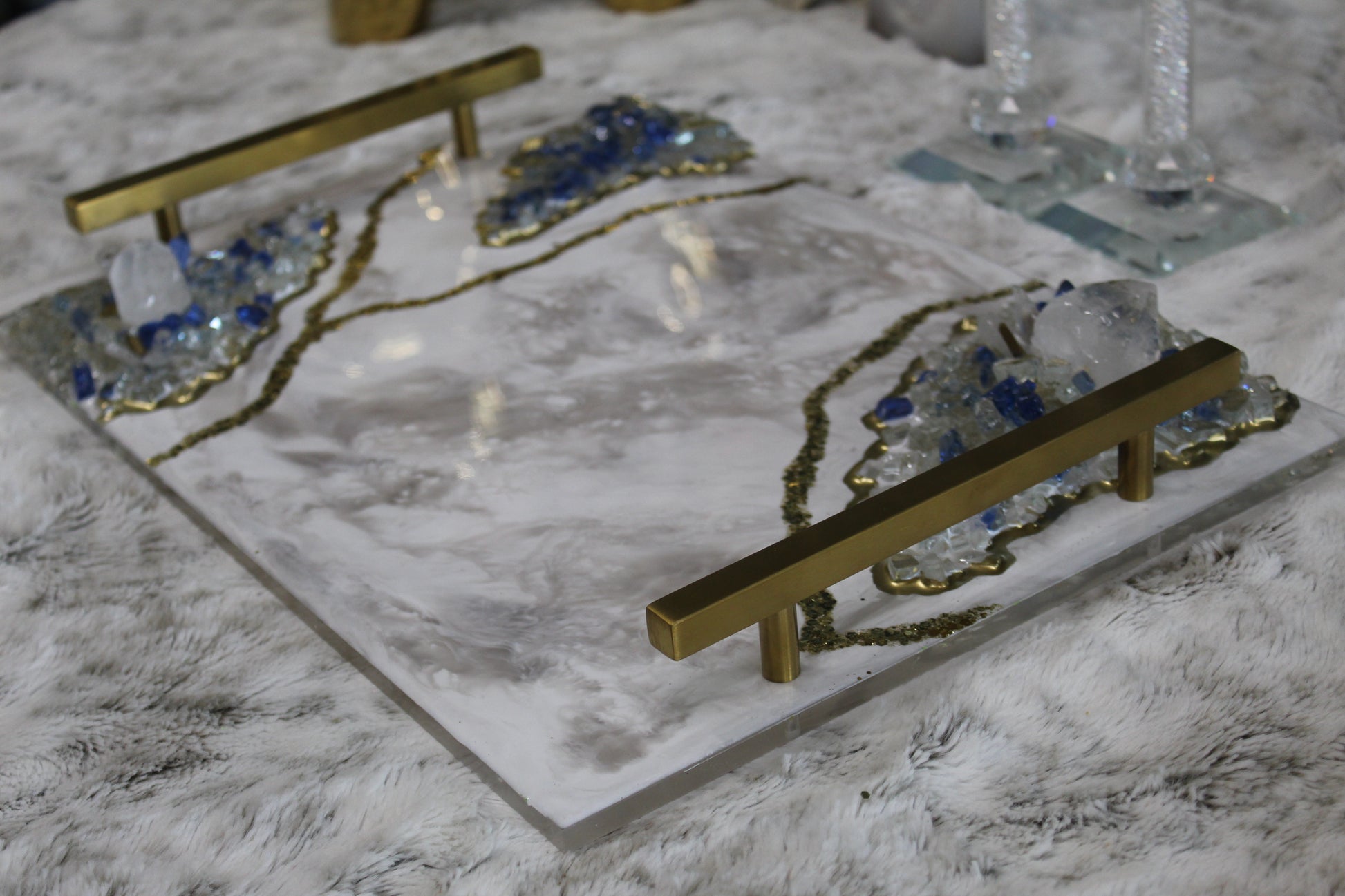 A handcrafted 12x16 resin tray with an acrylic base, each one made with love and intention.