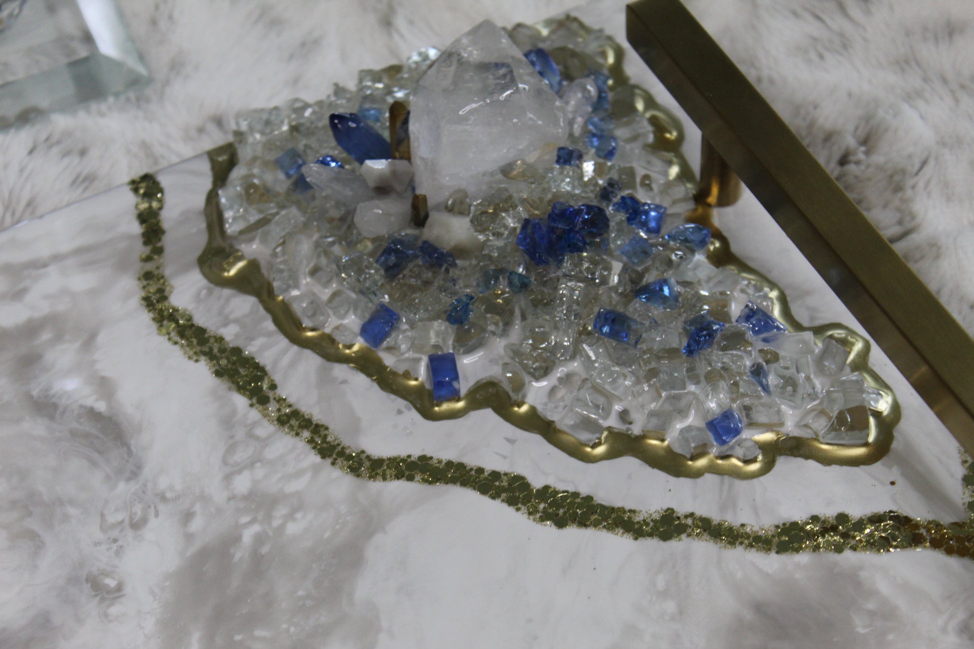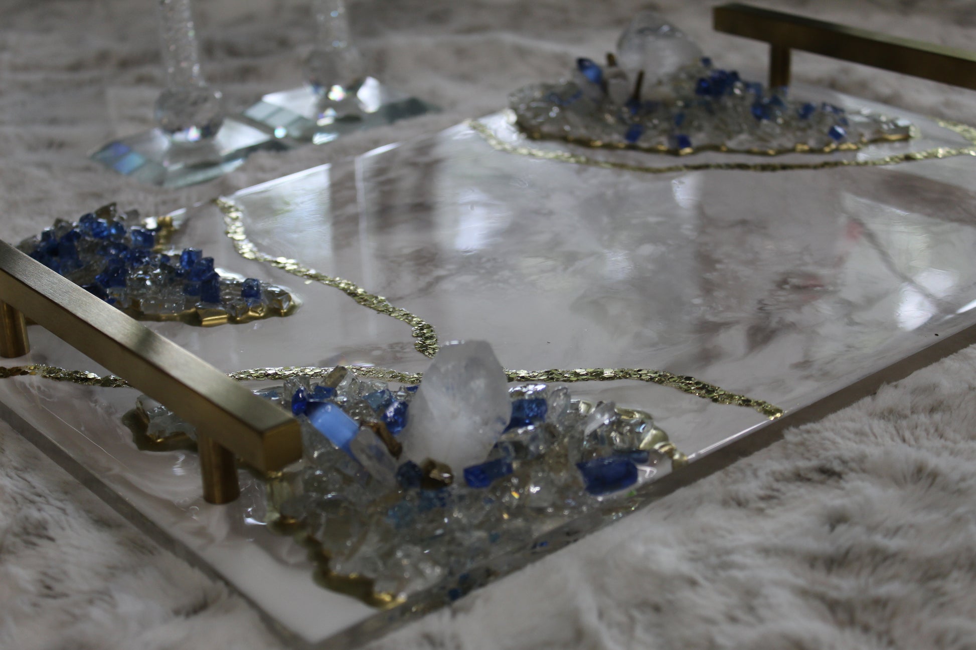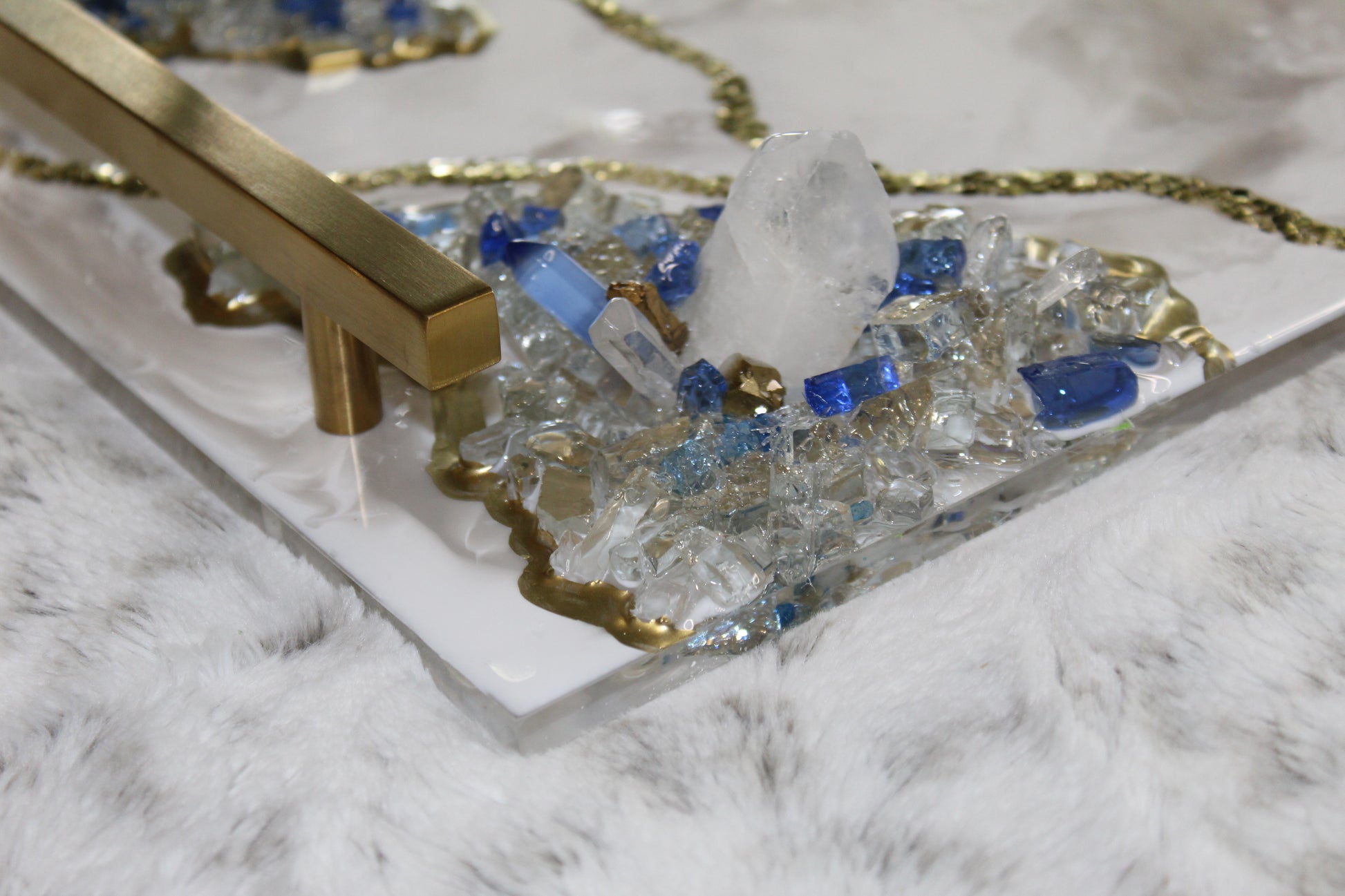 A handcrafted 12x16 resin tray with an acrylic base, each one made with love and intention.