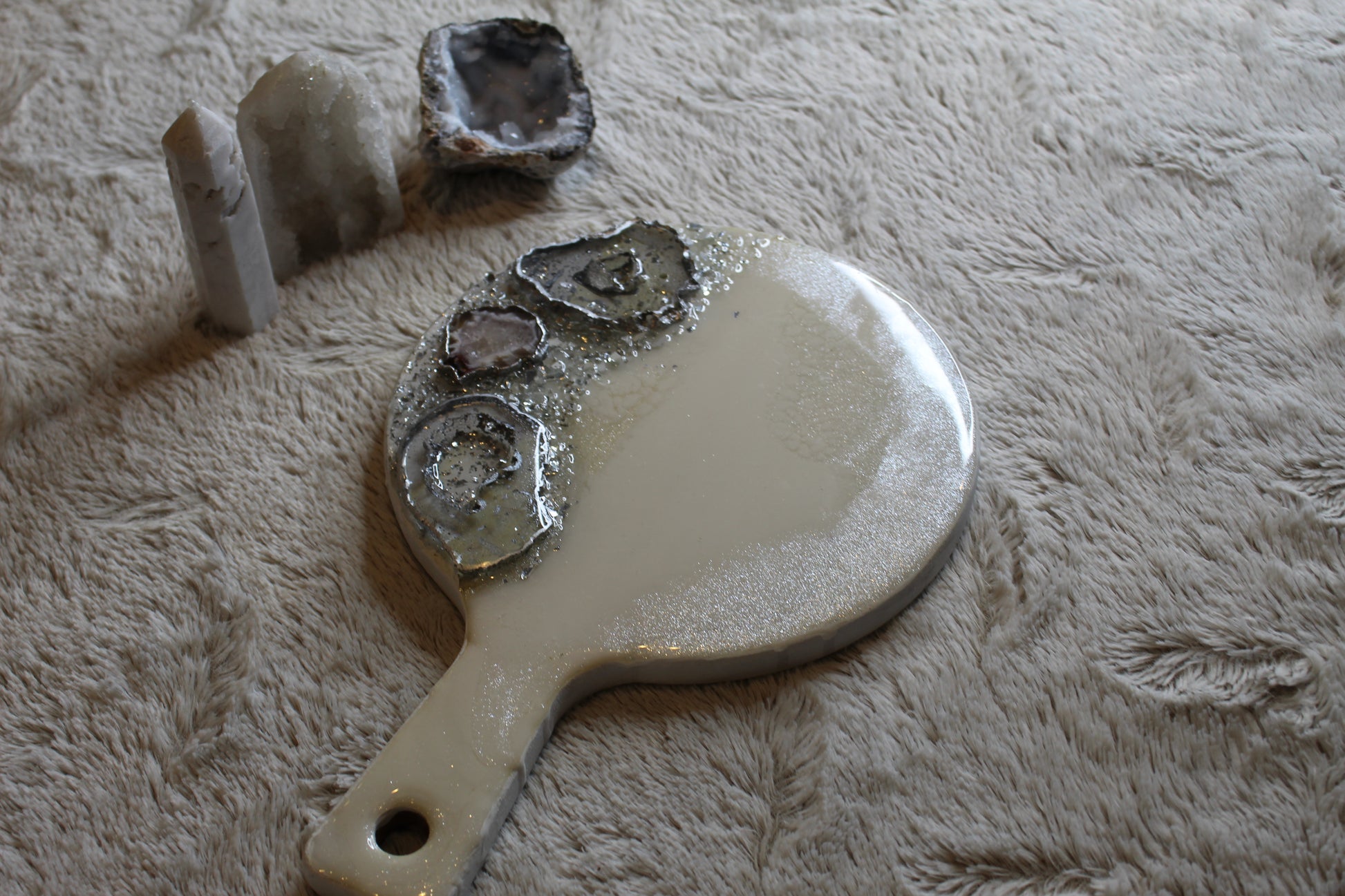 This mini charcuterie board, embellished with agate crystals and luxe gold accents, is more than just serveware — it’s a statement. Perfect for styling appetizers, desserts, or artisanal cheeses, it also doubles beautifully as a jewelry display, perfume tray, or elevated decor piece. A blend of function and artistry, it brings luxury to any moment, big or small.