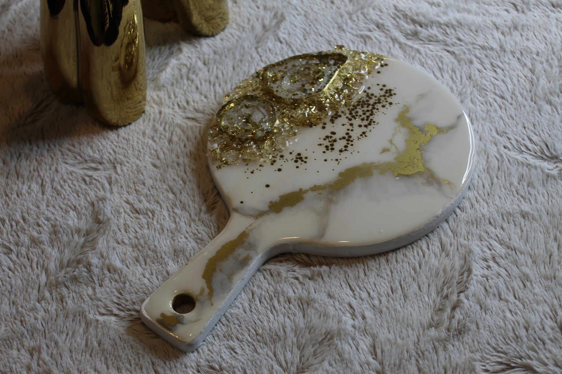 This mini charcuterie board, embellished with agate crystals and luxe gold accents, is more than just serve ware — it’s a statement. Perfect for styling appetizers, desserts, or artisanal cheeses, it also doubles beautifully as a jewelry display, perfume tray, or elevated decor piece. A blend of function and artistry, it brings luxury to any moment, big or small.