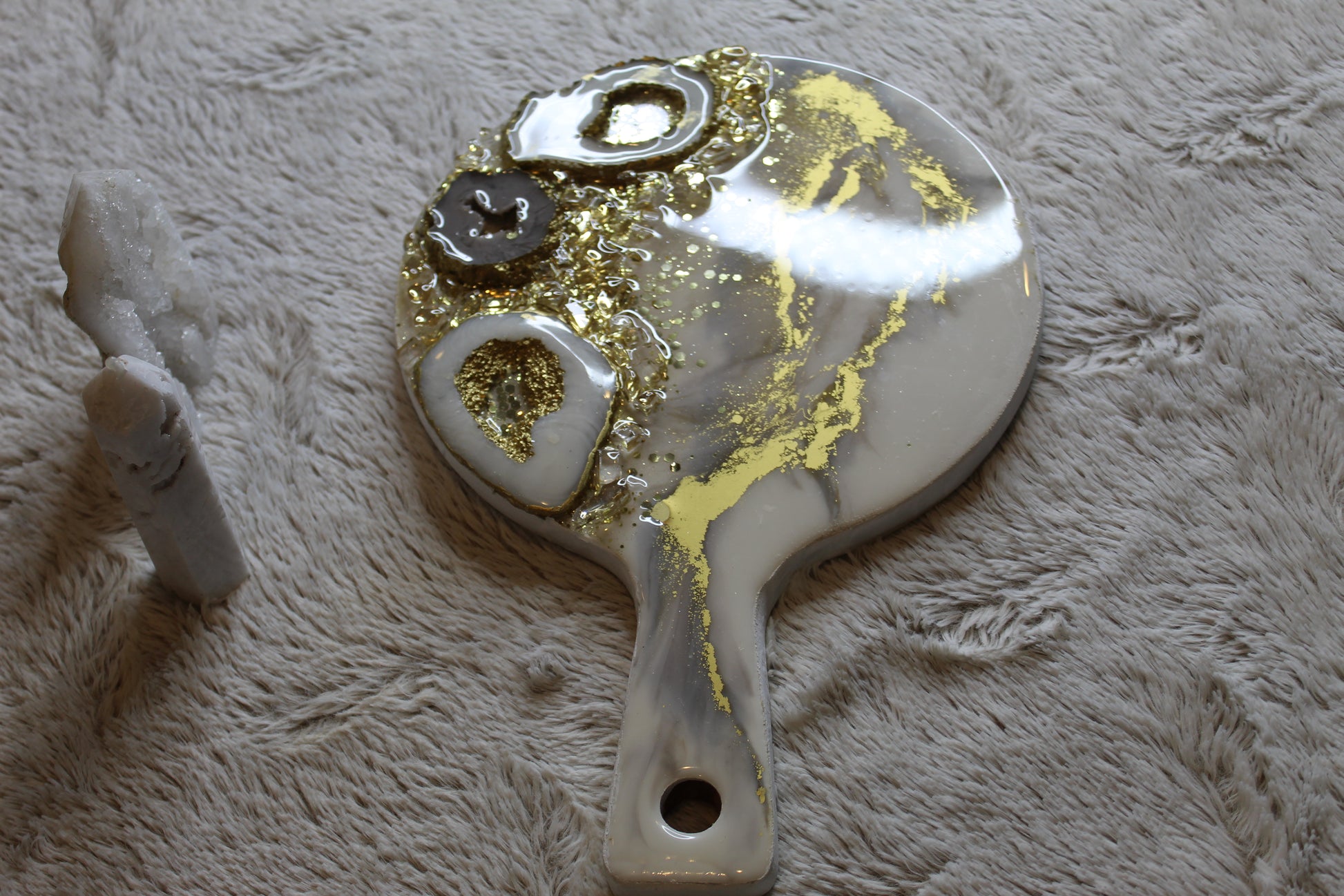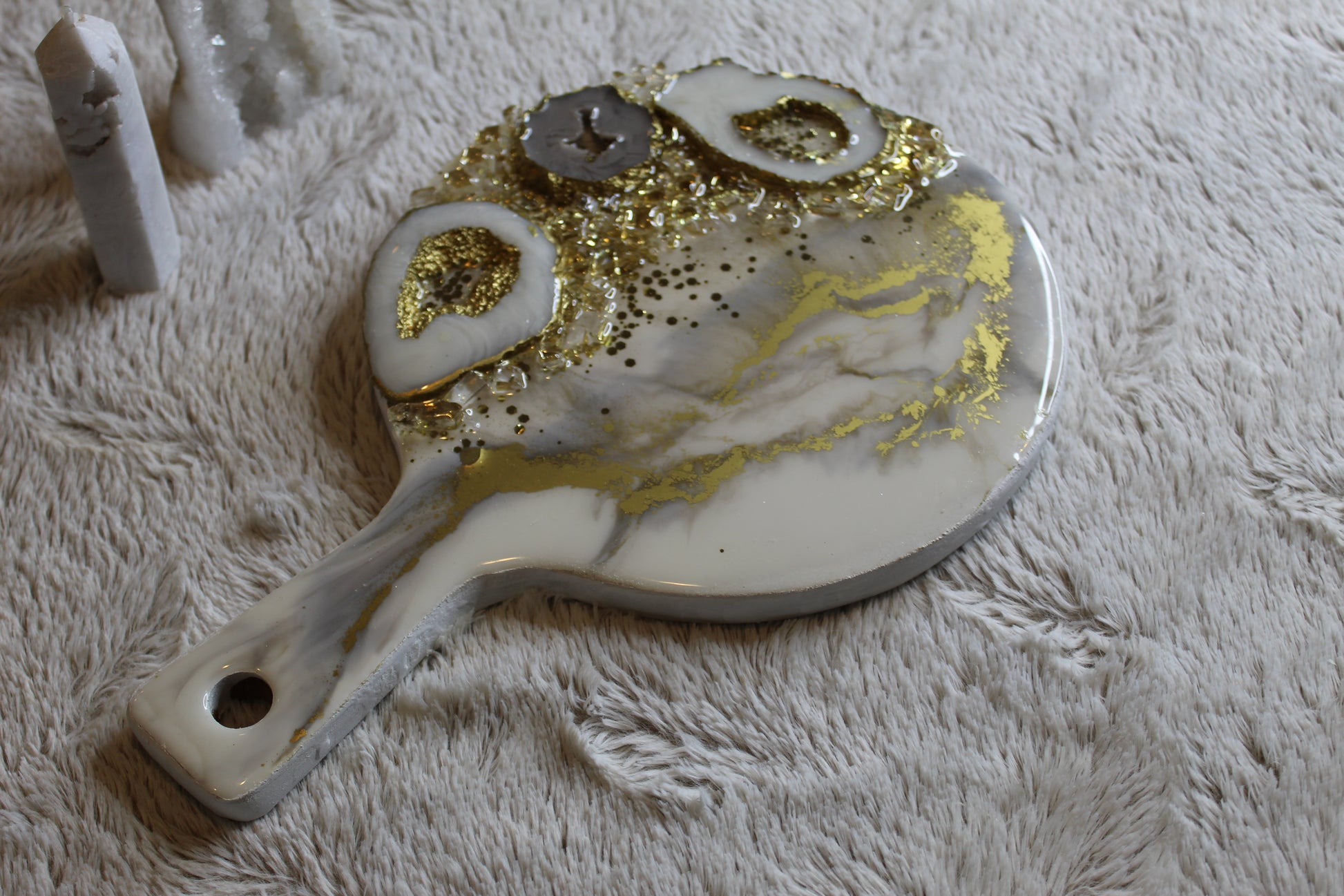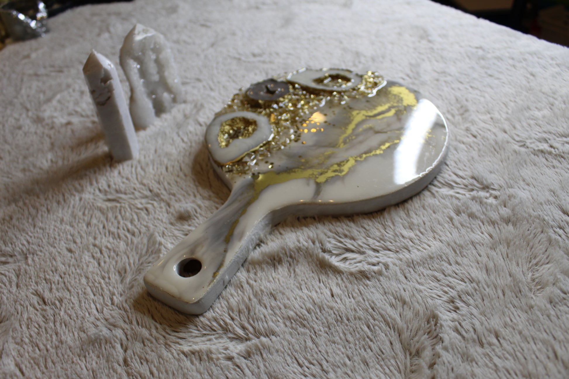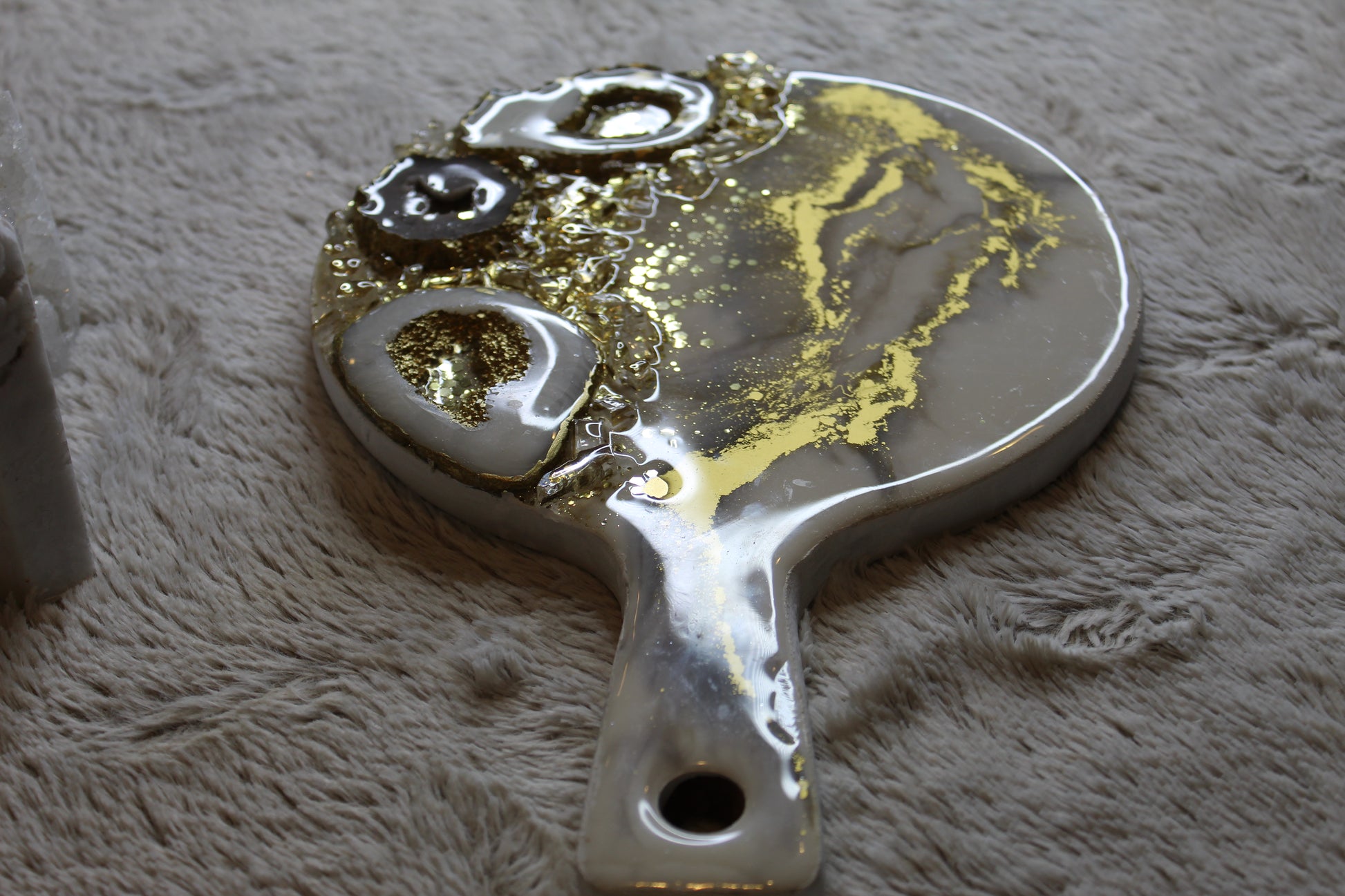 This mini charcuterie board, embellished with agate crystals and luxe gold accents, is more than just serveware — it’s a statement. Perfect for styling appetizers, desserts, or artisanal cheeses, it also doubles beautifully as a jewelry display, perfume tray, or elevated decor piece. A blend of function and artistry, it brings luxury to any moment, big or small.