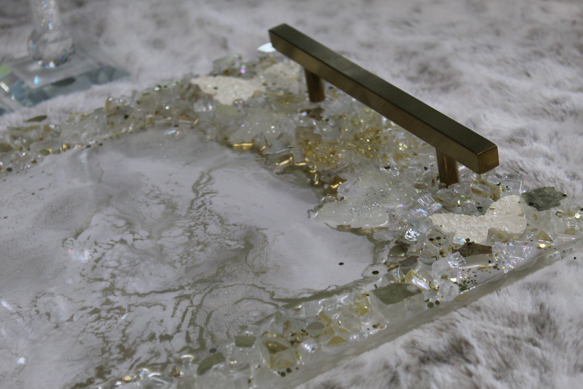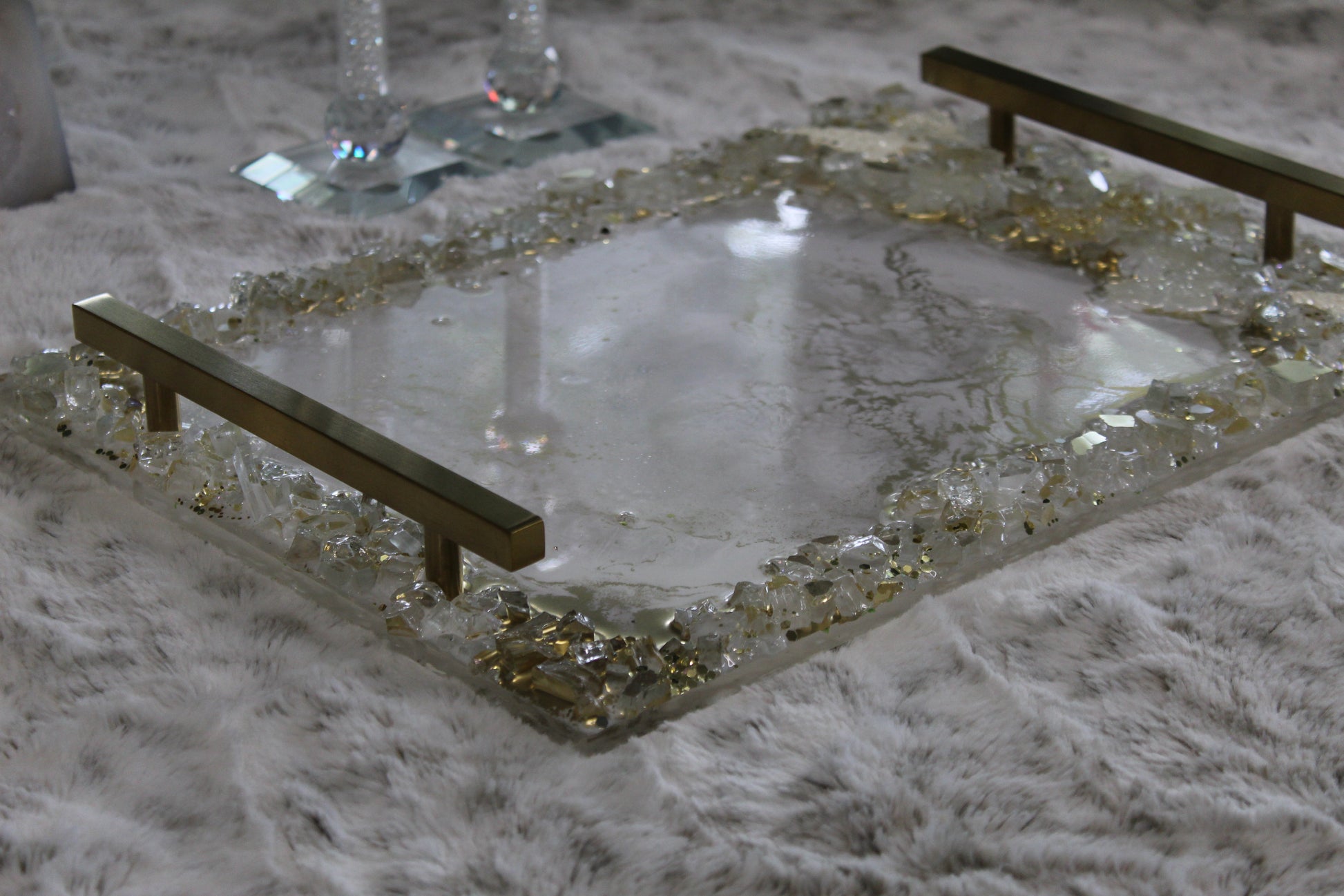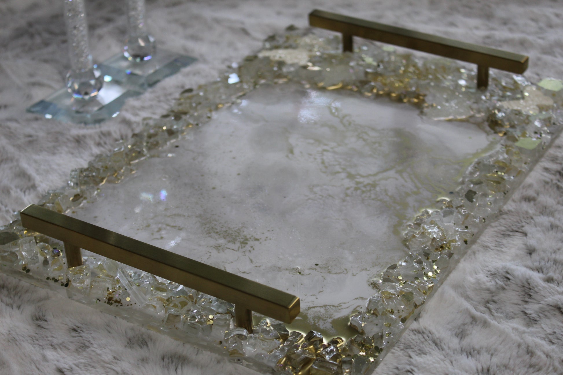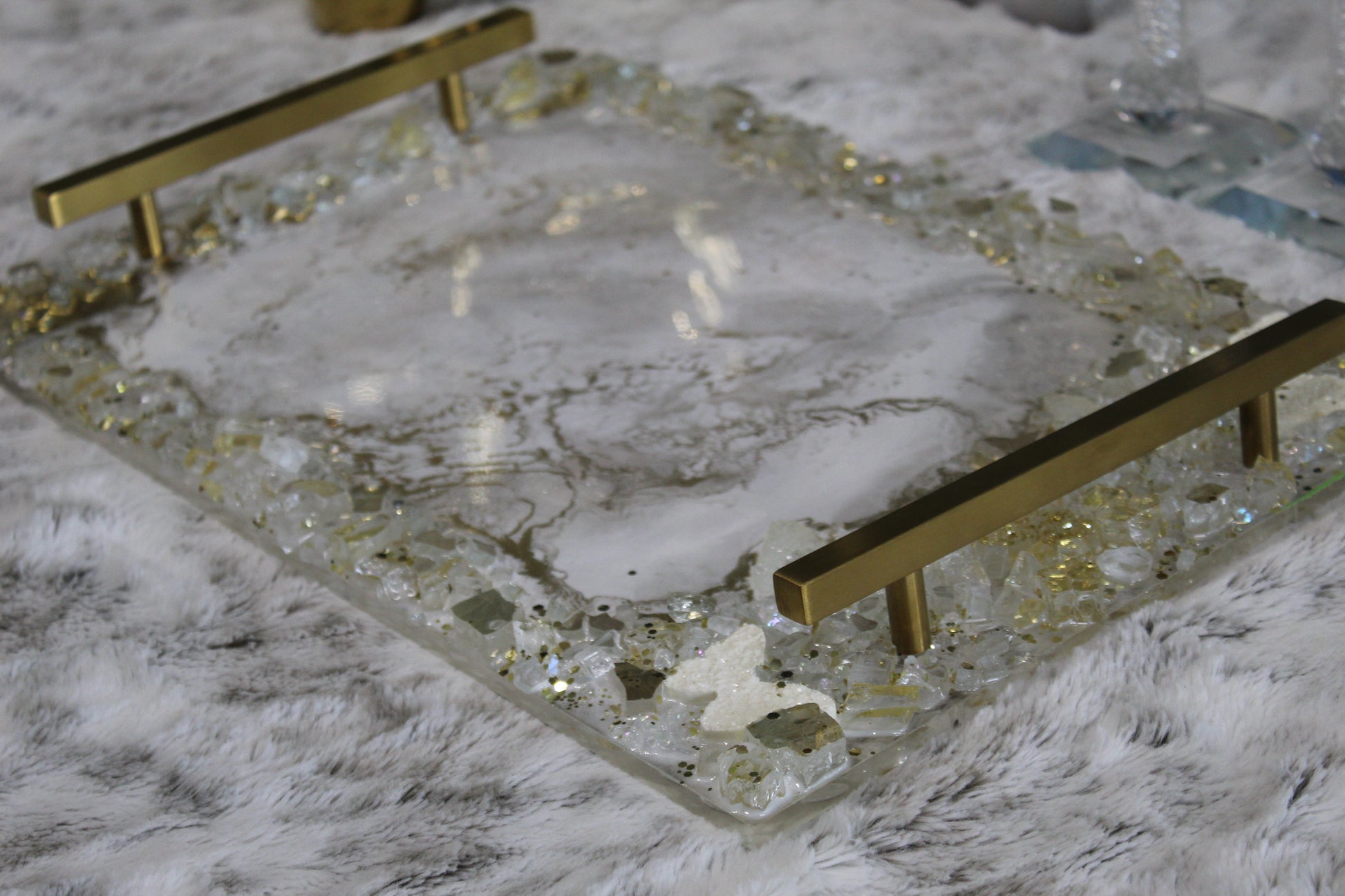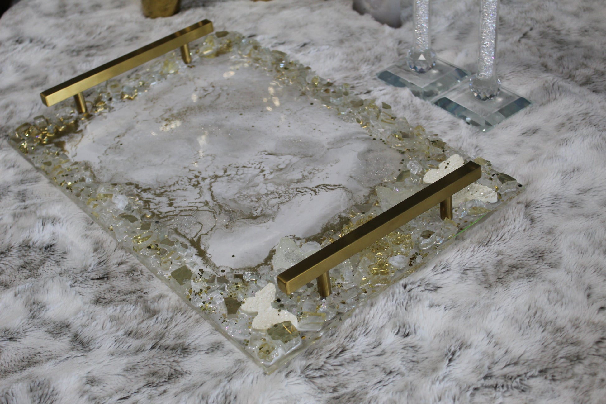 A handcrafted 12x16 resin tray with an acrylic base, each one made with love and intention.